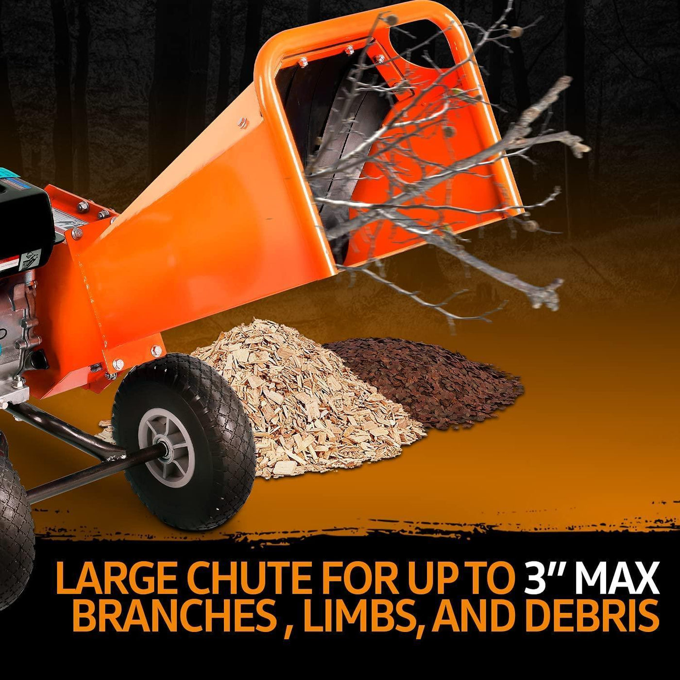 GreatCircleUSA Mini Wood Chipper & Shredder 7HP 212CC Gas Engine 3". Handles materials up to 3 inches in diameter, effortlessly chipping tree branches, limbs, brush, leaves, and corn stocks Voted Best Overall Wood Chipper by Better Homes & Gardens
